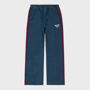 Cotton and Poly Blended Knit Cardigan in blue & cream. Knit graphic of Churchill Downs contrast in white. Embroidered Signature "150th Kentucky Derby x Homme Femme" at wearers right chest. Knit graphic continued at back, reads "Churchill Downs" centered at the top in blue. Striped & clean contrast ribbing at cuffs and center front closure.